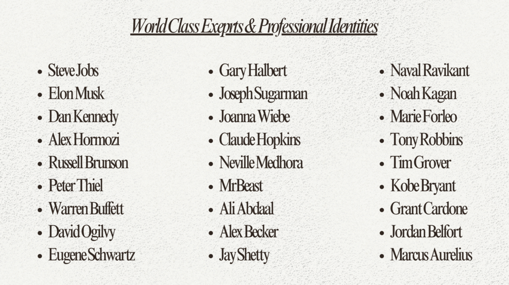 These are complete operating systems of how world-class experts think, decide, strategize, and dominate—installed.